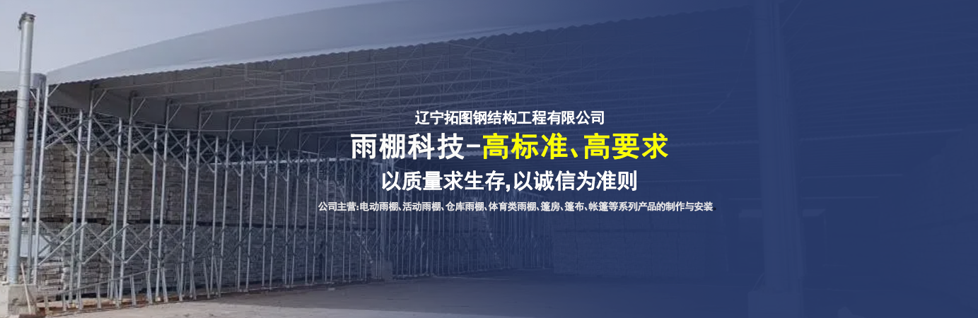 遼寧拓圖鋼結(jié)構(gòu)工程有限公司是一家專(zhuān)業(yè)從事推拉篷設(shè)計(jì)、制作、安裝、使用、維修的綜合性公司。公司主營(yíng):電動(dòng)雨棚、活動(dòng)雨棚、倉(cāng)庫(kù)雨棚、體育類(lèi)雨棚、篷房、篷布、帳篷等系列產(chǎn)品的制作與安裝。 遼寧拓圖鋼結(jié)構(gòu)工程有限公司堅(jiān)持以市場(chǎng)為導(dǎo)向,以科技創(chuàng)新為動(dòng)力,以質(zhì)量求生存,以誠(chéng)信為準(zhǔn)則,倡導(dǎo)求實(shí)、進(jìn)取、創(chuàng)新的企業(yè)精神。“科學(xué)的管理、嚴(yán)謹(jǐn)?shù)脑O(shè)計(jì)、 的制作安裝、嚴(yán)格的質(zhì)量檢測(cè)、良好的后期服務(wù)成就企業(yè)的信譽(yù),為您提供優(yōu)質(zhì)服務(wù)。 遼寧拓圖鋼結(jié)構(gòu)工程有限公司傾力于開(kāi)發(fā)應(yīng)用三維空間結(jié)構(gòu)與新材料的結(jié)合,將廣告藝術(shù)視覺(jué)表現(xiàn)形式與張力膜材科學(xué)的結(jié)合,推出多彩推拉蓬,依靠先進(jìn)的科學(xué)技術(shù),將推拉蓬建筑表現(xiàn)形式無(wú)限延伸,立志走在建筑科學(xué)的前沿,引導(dǎo)建筑時(shí)尚潮流,我們的目標(biāo)是使推拉蓬建筑在中國(guó)發(fā)展壯大。 遼寧拓圖鋼結(jié)構(gòu)工程有限公司憑著極強(qiáng)的事業(yè)熱情和豐富的專(zhuān)業(yè)經(jīng)驗(yàn)以“勤勉進(jìn)取、銳意創(chuàng)新、至誠(chéng)至信”的精神使公司得到迅速健康發(fā)展,業(yè)務(wù)范圍遍及全國(guó)。科學(xué)的管理、嚴(yán)謹(jǐn)?shù)脑O(shè)計(jì)、高標(biāo)準(zhǔn)的制作安裝流程,嚴(yán)格把控產(chǎn)品質(zhì)量,熱誠(chéng)的售后服務(wù)是企業(yè)競(jìng)爭(zhēng)力的源泉。 遼寧拓圖鋼結(jié)構(gòu)工程有限公司人愿以最誠(chéng)摯的態(tài)度,歡迎廣大客戶的蒞臨與溝通!愿為市場(chǎng)提供優(yōu)...